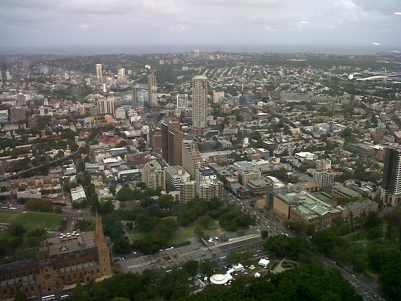 Friday 27th Jan. Jonathan was back at work today so Maddie took me to get a croissant for breakfast at this great bakery. We then went and did a walk around Bondi beach right along the coast which went over to Tamarama and Bronte beach. We only went to Tamarama but it was a really lovely the walk. I found it funny how a cemetery had prime real estate position above Bronte beach looking out over the ocean. We then went to look around Jonathan's offices. They were really cool and as we walked in there was a bike attached to the wall. They also have a white room for meetings and I liked how when any employee goes abroad they have to bring back a snow globe, they have quite a collection. We then went to lunch in a nice place in Paddington. Afterwards Jonathan returned to work and Maddie and I went into the city. She showed me around the QVB which is a gorgeous old Victorian shopping arcade. I wanted to do the Sydney tower but Maddie wasn't up for it so I went up while she got a massage! The tower experience started with a short 4d movie which we wore the special glasses for. The movie basically was different views of Sydney. We actually got splashed with water as it zoomed in on someone surfing. It also went under water with jelly fish and bubbles came out of the screen. The film then zoomed in on a shark and I had to take my glasses off! After the film we went up in a small lift, group by group, to the observation deck. Although it wasn't a really clear day it was still a great view and I didn't feel at all worried by being up so high. I took lots of pictures and came back down to find Maddie who then showed me the Ivy Pool club which is like a very high market bar. In the evening Hip and Rob came over with my stuff and we went to North Bondi Italian. I had something which resembled fish and chips which was really good, although I was joking with Jonathan that nobody does it better than the English. After a really fun night, Hip and Rob left and we went back to Jonathan's to tease him about being nasty on Australia's next top model.